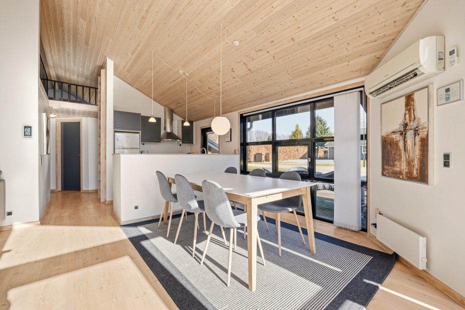 Eine effiziente Luft-zu-Luft-Wärmepumpe sorgt zusätzlich für eine optimale Temperierung und einen geringen Energieverbrauch im Ferienhaus.