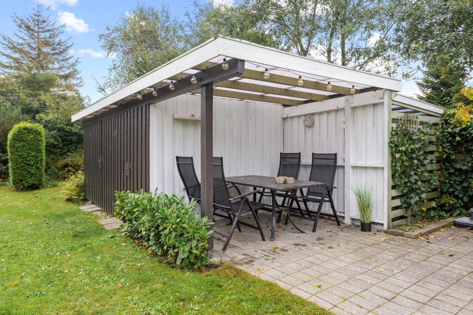 Der Außenbereich des Ferienhauses besticht durch ein 1504 qm großes Gartengrundstück, das euch reichlich Platz zum Spielen und Relaxen bietet. Nutzt die teils überdachte Terrasse für gesellige Abende; ein Grill und Gartenmöbel stehen für gemütliche Mahlzeiten im Freien bereit. Für sonnige Tage sind auch Sonnenliegen vorhanden, auf denen ihr die dänische Sonne genießen könnt.
