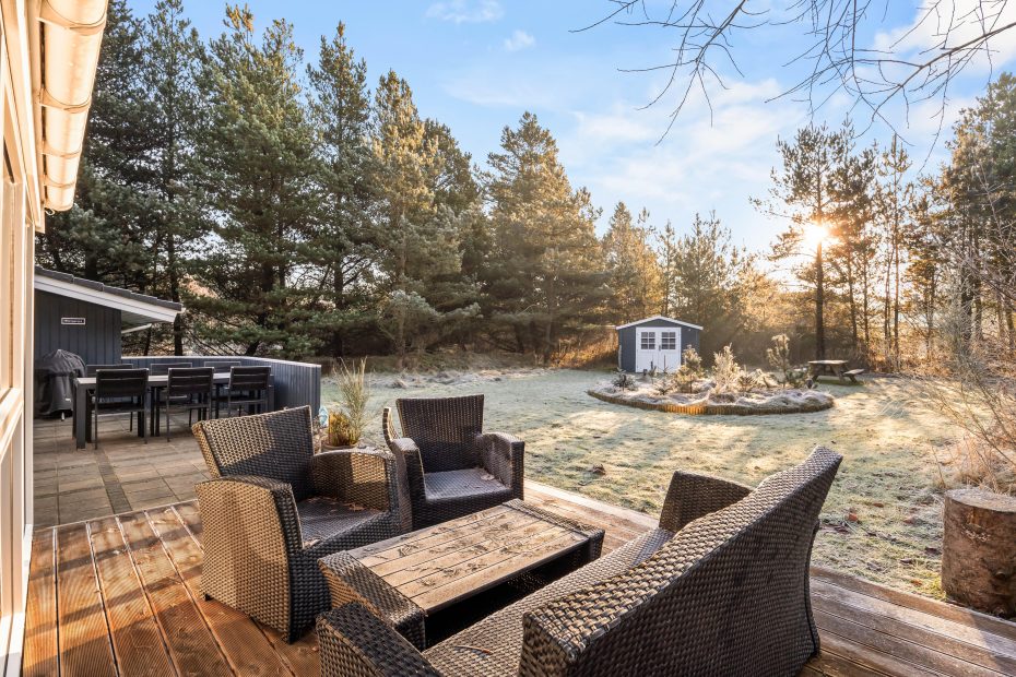 Eingebettet in ein weitläufiges Naturgrundstück, lädt der Außenbereich im Hans Hansensvej 98 dazu ein, die natürliche Umgebung in vollen Zügen zu genießen. Mit einer Kombination aus offener, abgeschirmter und geschlossener Terrasse stehen vielfältige Optionen zur Verfügung, um das Wetter in jeder Situation optimal zu nutzen. Hier könnt ihr bei einem Frühstück im Freien den Tag beginnen oder abends entspannt grillen und die Ruhe genießen.
