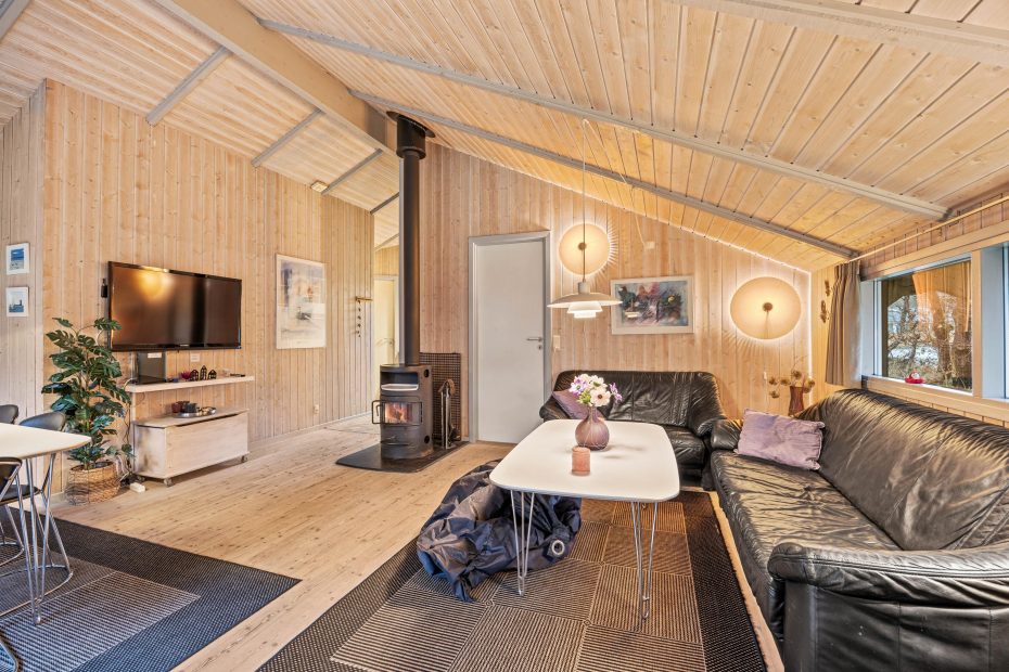 Durch die großen Fenster und die hell eingerichteten Räume wirkt das Ferienhaus freundlich und einladend. Die große Sauna die sich im Haus befindet, bietet den Perfekten Ort um nach einem langen Ferientag zu entspannen und die Betterien wieder aufzuladen.