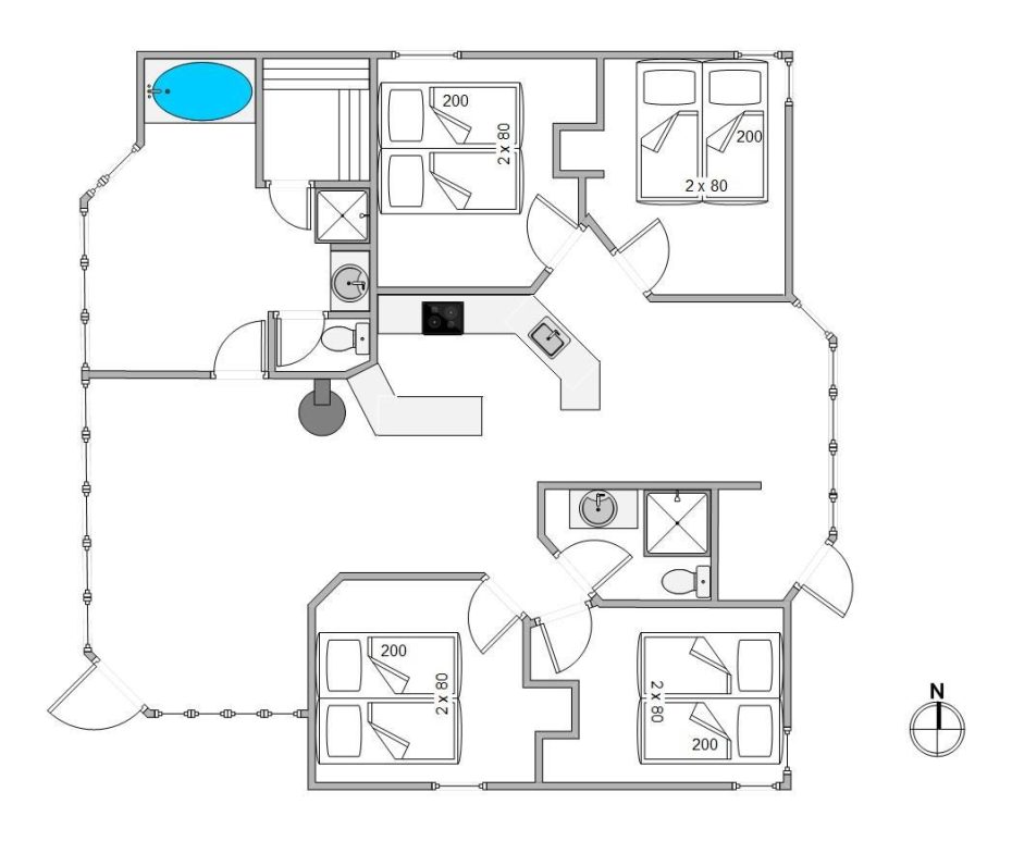 Ein schönes helles Haus mit einem gemütlichen Wohnraum sowie einem gut beheizbaren Ofen. Große Fensterflächen lassen ein Gefühl wie in einem Wintergarten entstehen. Die Küche ist gut integriert und mit allem ausgestattet was man braucht. Die vier Schlafzimmer sind ausreichend groß und mit guten Matratzen ausgerüstet. Es gibt zwei Badezimmer, wobei das große fast wie ein Wellnessparadies ist mit Whirlpool und Sauna. Die Aussenanlage lädt zum Verweilen ein und auch an Kinder wurde gedacht.