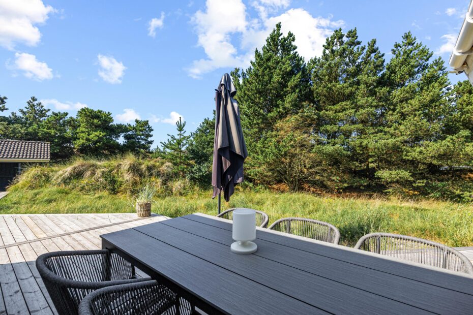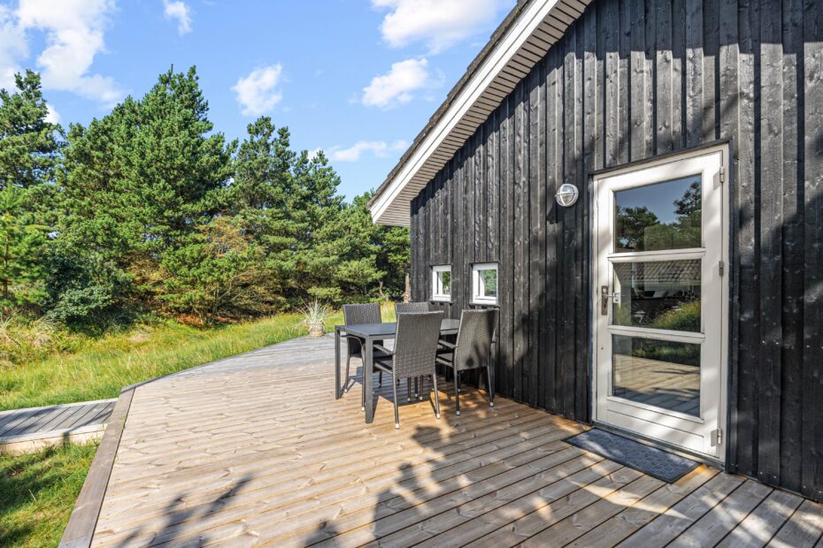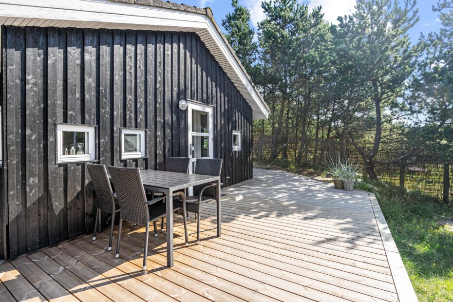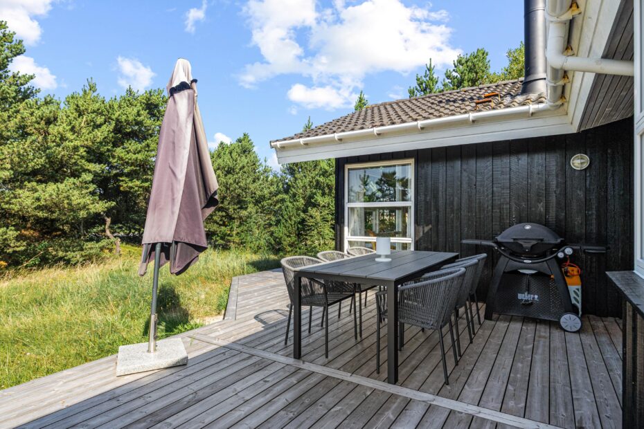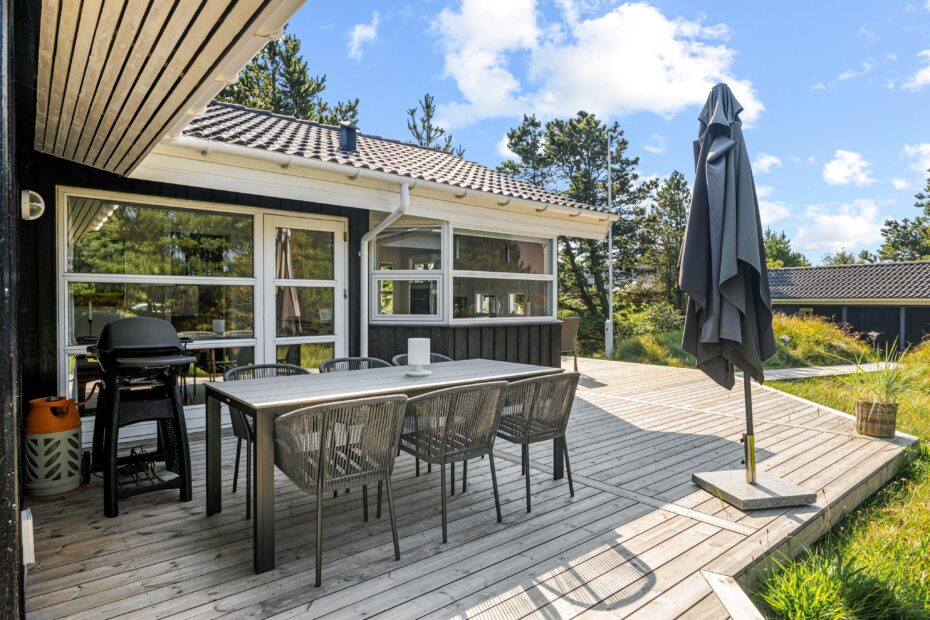 Im Außenbereich könnt ihr das Ferienleben auf der Terrasse genießen. Gartenmöbel stehen bereit – ob für den Morgenkaffee, ein Sonnenbad oder gesellige Grillabende. Das Grundstück ist leicht hügelig und vermittelt euch das Gefühl, mitten in der Natur zu sein – auch wenn sich andere Ferienhäuser in der Umgebung befinden. Nach einem Ausflug an den Strand könnt ihr euch bequem unter der Außendusche abspülen. Ab 1/4 2026 steht ein Aussenwhirlpool zu verfügung.
