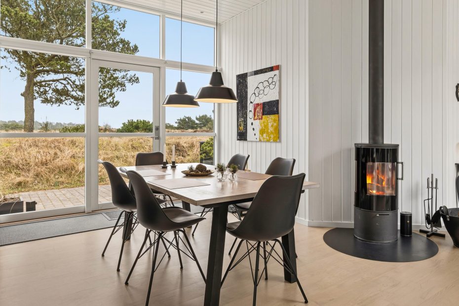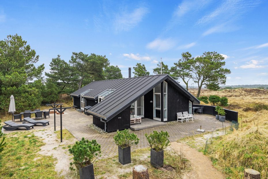 Nur wenige hundert Meter von der Nordsee entfernt liegt nah am Fluss Henne Mølle Å auf Fyrrenålevej 1 , dieses stilvoll, gemütlich und modern eingerichtete Ferienhaus mit Platz für 6 Personen und 1 Hund. Vom Essbereich in der Mitte des Hauses habt ihr einen fantastischen Panoramablick auf ein, insbesondere im Spätsommer, in tollen Farben blühendes Heidegebiet.