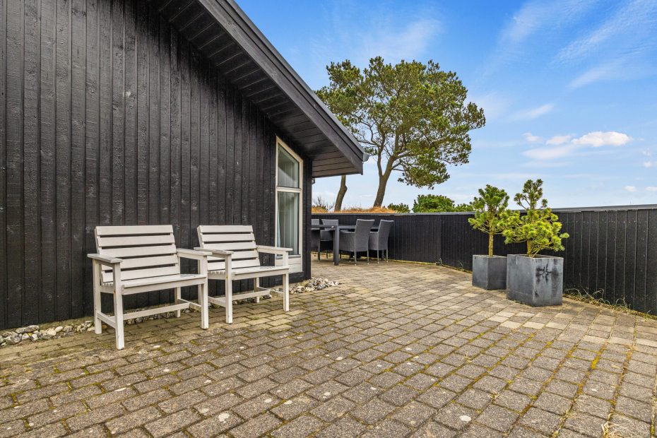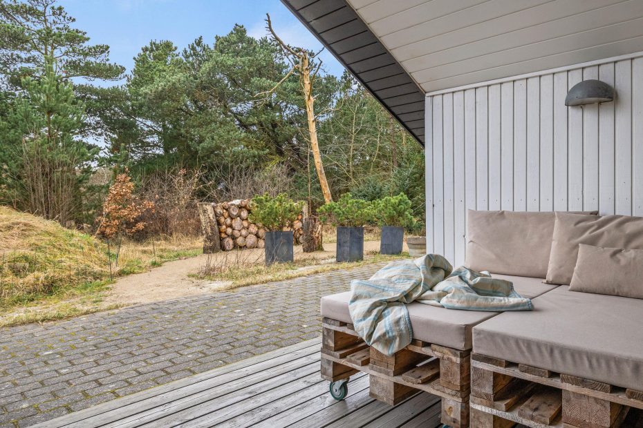 Das Ferienhaus in Henne Strand mit wunderschöner und ruhiger Lage auf Fyrrenålevej 1, bietet einen schönen Blick auf ein riesiges Heidegebiet auf der gegenüberliegenden Straßenseite, was gerade im Spätsommer ein Traum in Rosa und Lila ist. Direkt vom Frühstückstisch könnt ihr diesen fantastischen Ausblick genießen, während ihr die Aktivitäten des Tages plant.