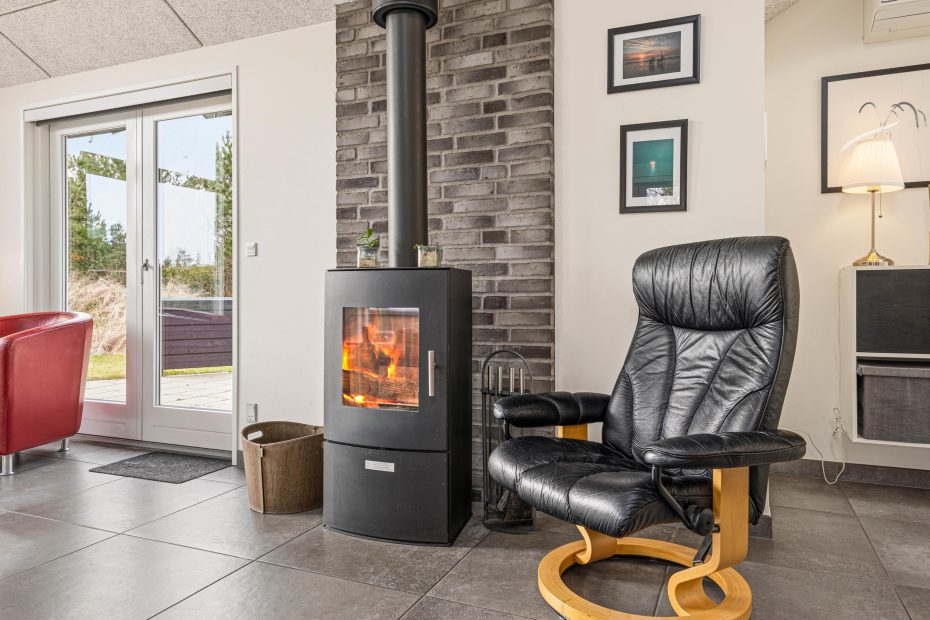 Kaminofen, Flachbildschirm, Parabolantenne (Deutsche und Dänische Fernsehprogramme), DVD-Spieler, Radio mit CD-Spieler.