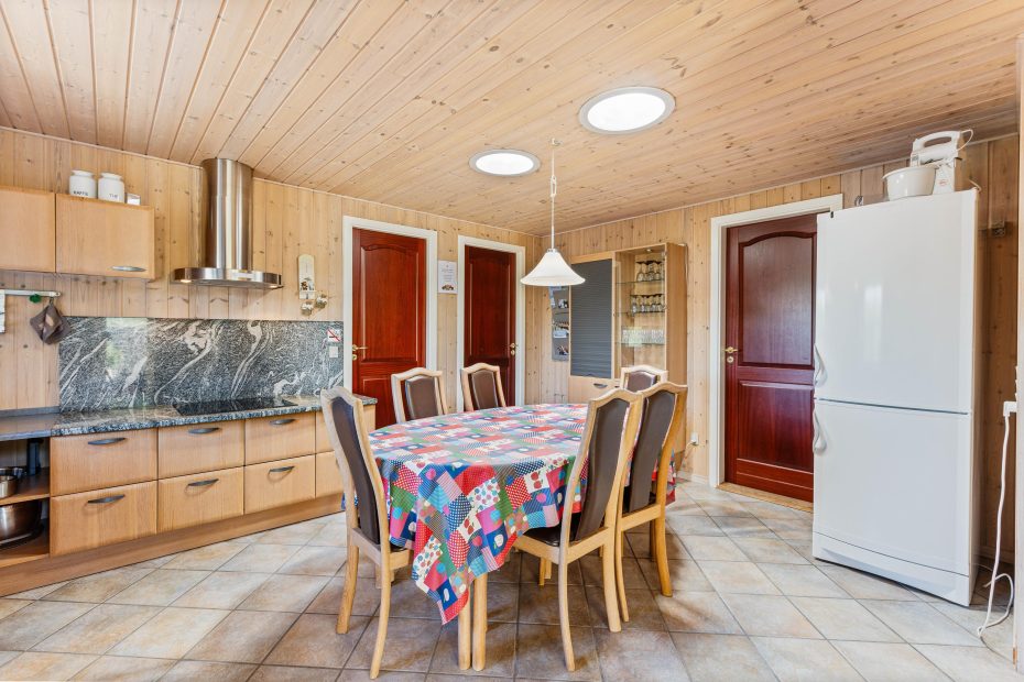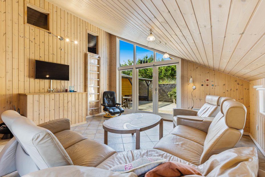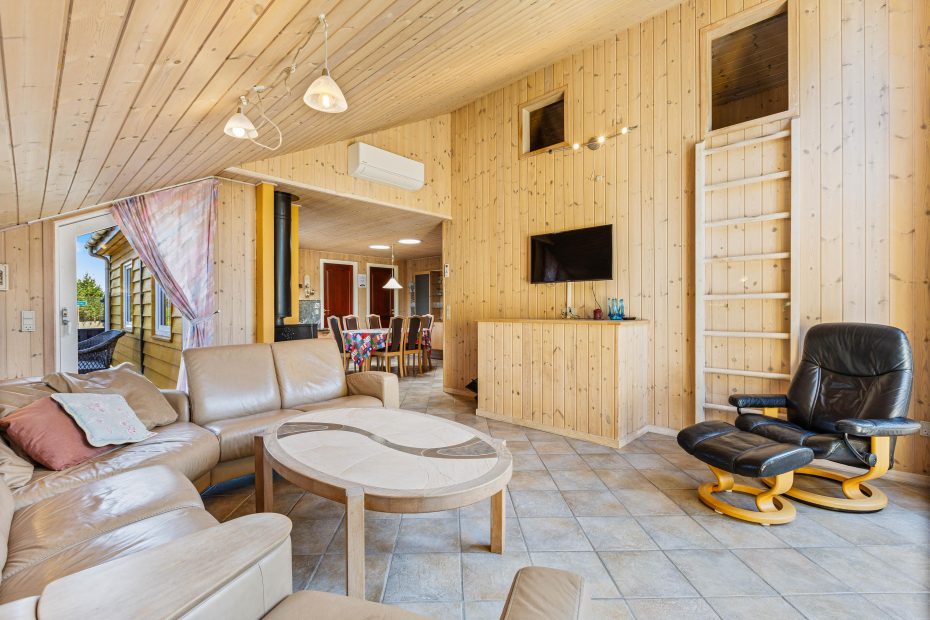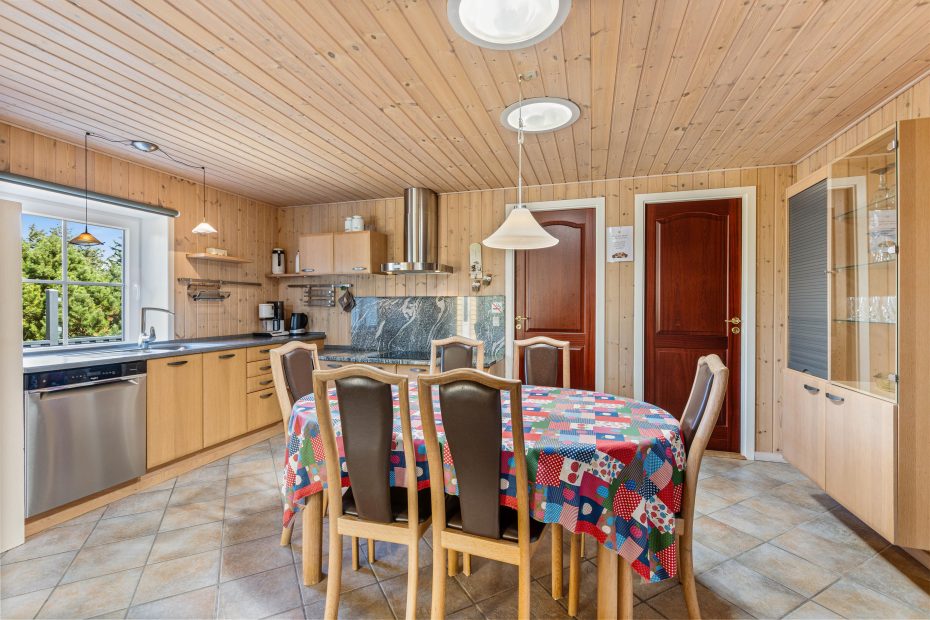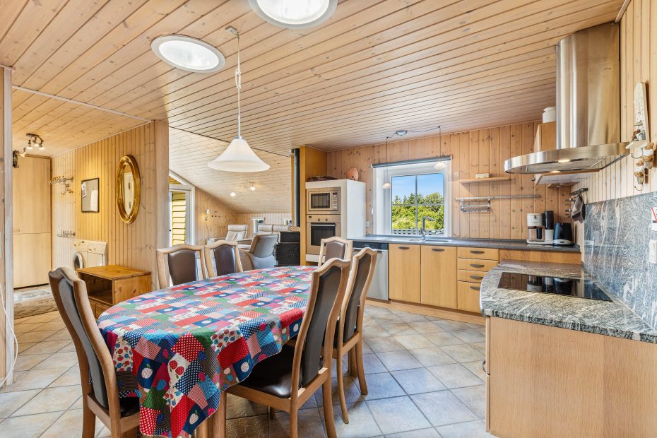 Hier im Havvej 45 ist es schön und insbesondere einfach, in der großen Küche zusammen zu kochen. Es ist viel Platz für alle Familienmitglieder, am Herd und auf den Arbeitsplatten das Essen vorzubereiten. Während der eine Teil kocht, können sich die Anderen auf dem großen Sofa niederlassen und ein wenig TV schauen. Die Kleinsten in der Familie können sich auf dem kleinen Hems beim Wohnzimmer verstecken.