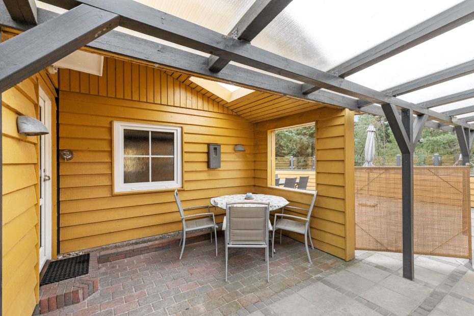 Eine große geschlossene, teils überdachte Terrasse garantiert euch eure Privatsphäre und zusätzlich bei schlechterem Wetter Unterschlupf, sodass ihr trotzdem draußen sitzen könnt. Ihr könnt eure Mahlzeiten draußen genießen, da alle Personen draußen Platz finden. Auf den Liegen könnt ihr euch sonnen oder am Esstisch den Grill nebenan anwerfen und einen tollen Grillabend veranstalten.