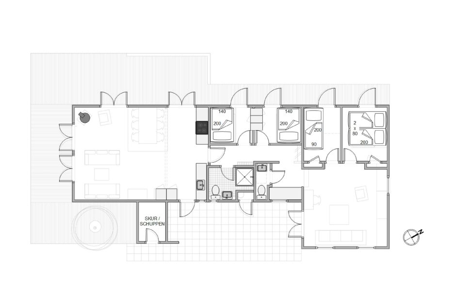 Egal ob du einen Urlaub zu Mittsommer (Sct. Hans) oder über Silvester planst, dann ist dieses Ferienhaus der perfekte Rückzugsort, um entspannte Tage mit deinen Lieben zu genießen. Der große Rasen ist perfekt für die Kinder, hier können sie sich austoben. Währenddessen ihr kalte Getränke auf der Terrasse unter dem Sternenhimmel genießen könnt.