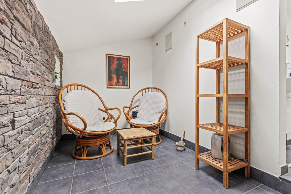 Glasfaser internet, Sauna, Waschmaschine, Trockner, Holzboden Teppich im Wohnbereich, Teppich im Schlafzimmer, Wärmepumpe, Überdachte Terrasse, Offene Terasse, Gartenmöbel, Liegestühle, Grill, Sandkasten, Schaukeln, Autoschutzdach.