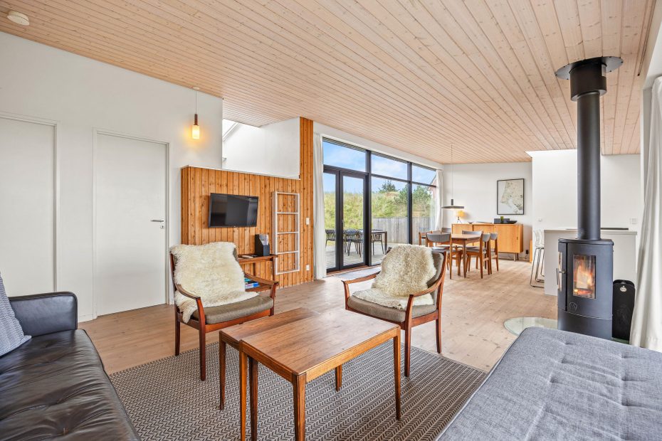 Die Ausstattung des Ferienhauses hier auf Tyttebærvej 1B ist komfortabel und gut. Selbstverständlich stehen euch Annehmlichkeiten wie ein Geschirrspüler, eine Waschmaschine und ein Trockner helfend zu Seite. Ein Kamin sorgt an kühleren Tagen für behagliche Temperaturen aber auch eine moderne und energiesparende Wärmepumpe steht bereit. In Vejers gibt es Einkaufsmöglichkeiten und die Idylle dieses kleinen Badeortes an der dänischen Westküste wird euch begeistern.
