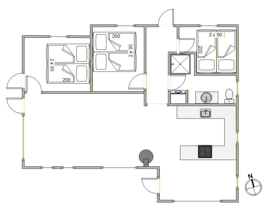 Das Ferienhaus hat 78 m2 und hat insgesamt 3 gute Schlafräume, wobei in 2 Räumen Doppelbetten stehen und im Dritten befinden sich 2 Einzelbetten. Alle Betten sind ausgetauscht in 2022. Morgens nach dem Aufstehen bekommt keiner kalte Füsse, denn in dem Badezimmer des Ferienhauses ist eine Fussbodenheizung.