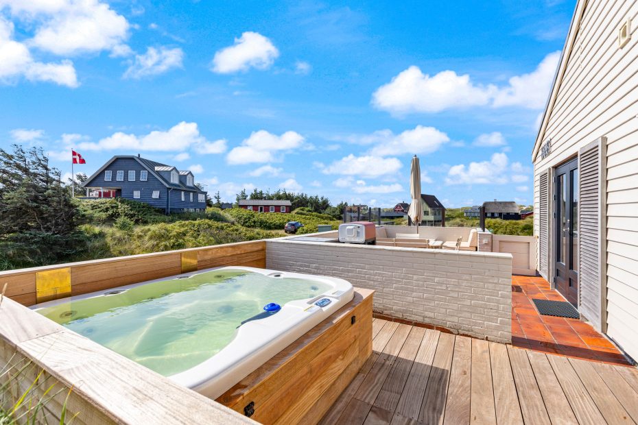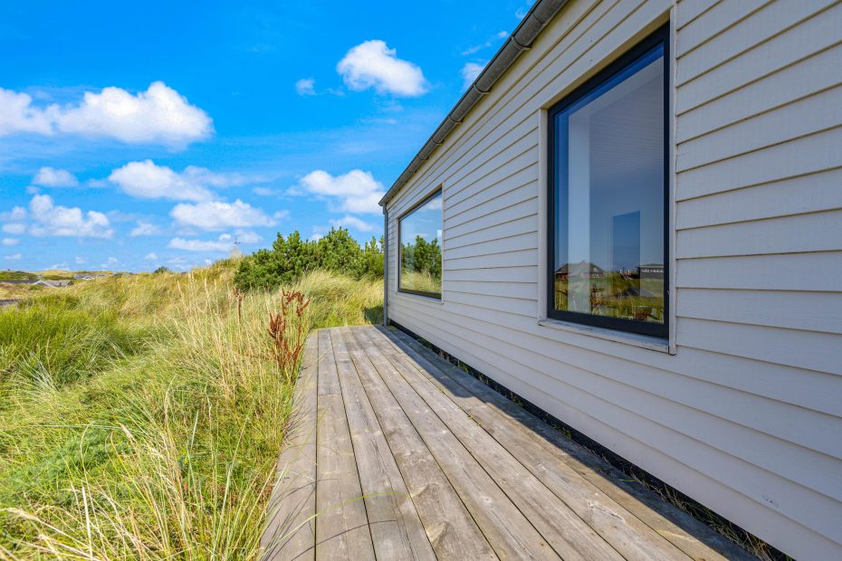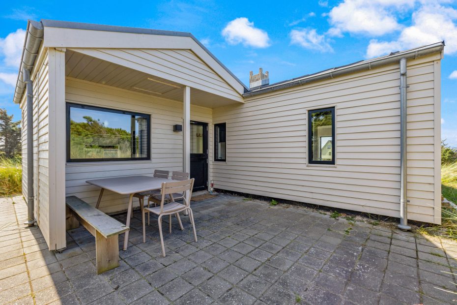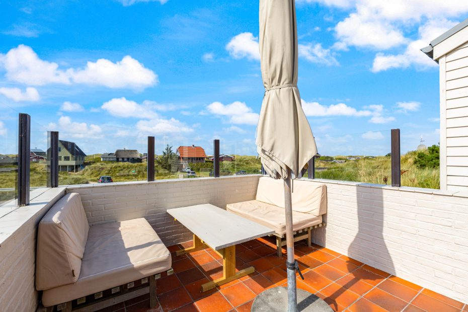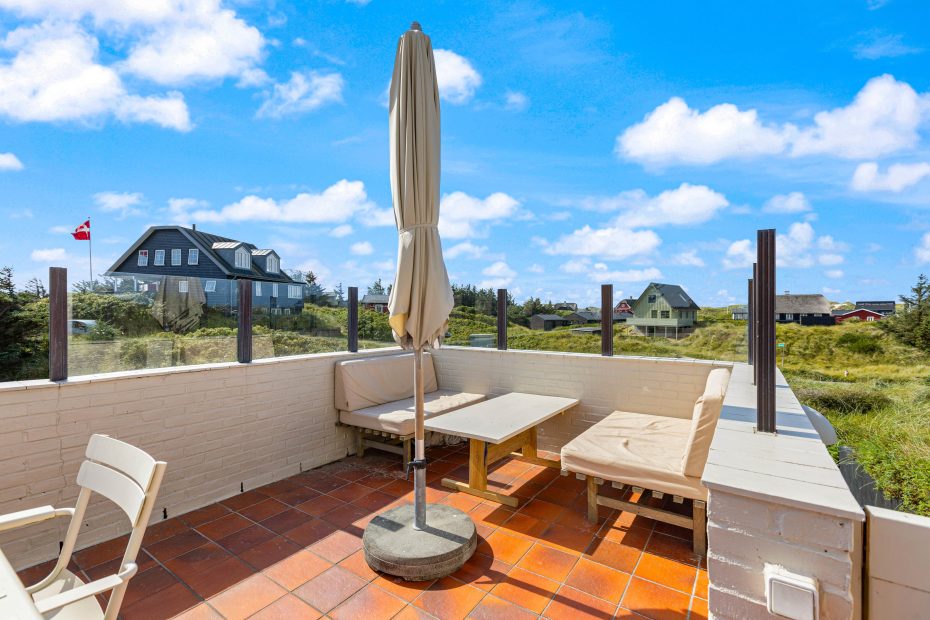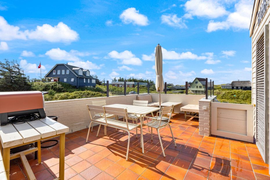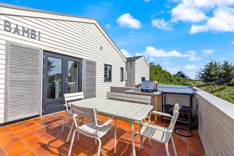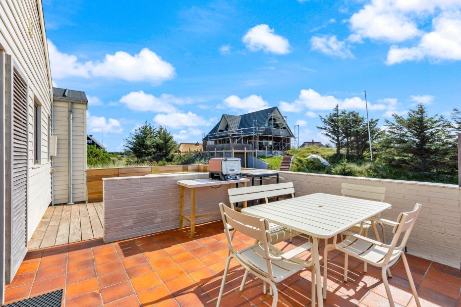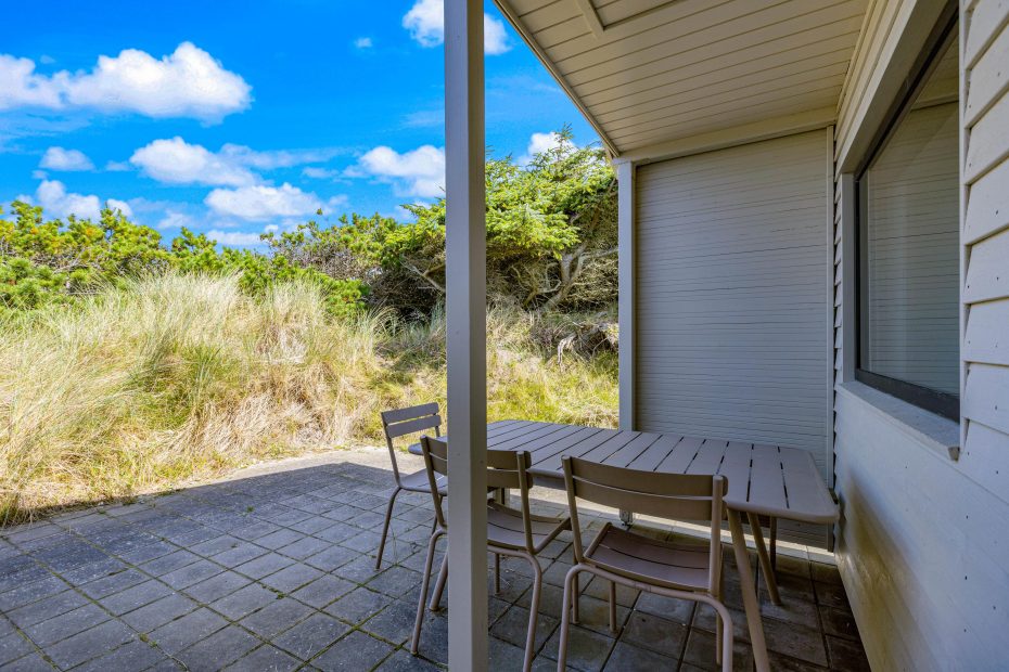Draußen auf der Terrasse könnt ihr euch aussuchen, ob ihr lieber schön windgeschützt sitzen möchtet, oder auf der offenen Holzterrasse in den bequemen Liegestühlen die Sonne, den Westwind und den Ausblick genießen wollt. An einem lauen Sommerabend solltet ihr draußen den Tisch decken, und den Grill für’s Abend essen anfeuern. Denn die Abendstimmung mit dem Sonnenuntergang am Horizont der Nordsee, ist in Vejers etwas wirklich Magisches.