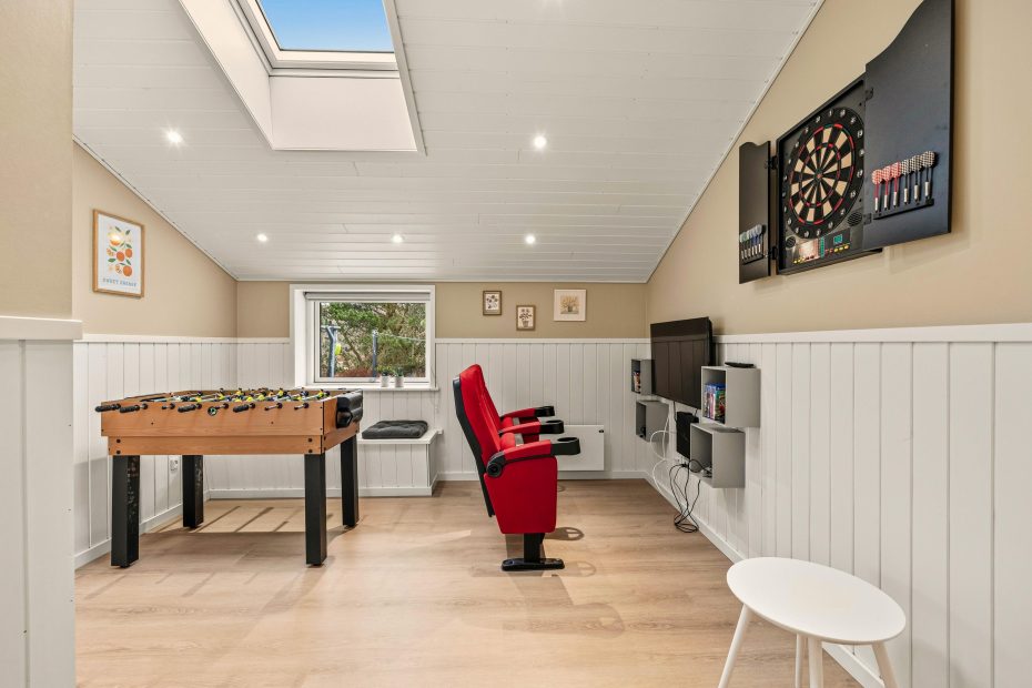 Das schöne Nichtraucherhaus ist sehr gut eingerichtet, mit Aktivitetsraum mit Tischfussballtischt, Dartscheibe und Gamerecke mit 2 bequemen Kinostühlen, 2 schöne Badezimmer das eine mit Badewanne, Dusche und Infrarotsauna, das andere mit Dusche. Der offene Küchen- und Essbereich – ist das Herz des Hauses. In der Küche kann die ganze Familie miteinander Kochen und nach dem Essen einen Spieleabend einlegen, oder einen gemütlichen Filmabend auf der Couch verbringen.