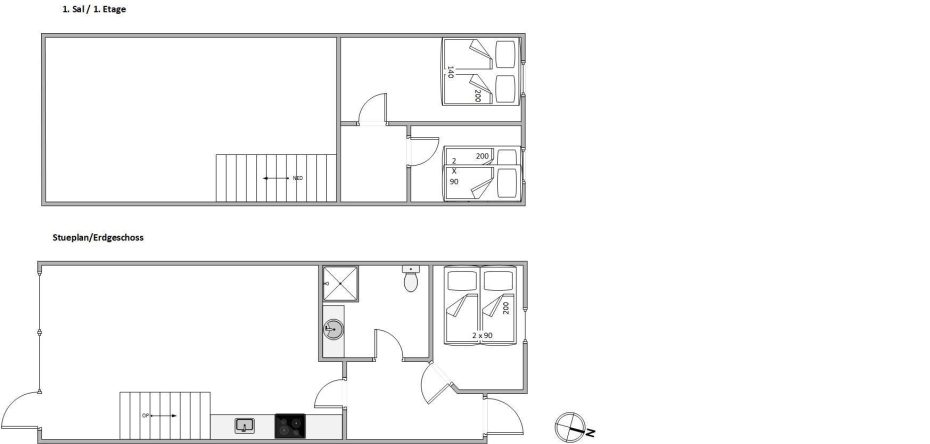 Die Wohnung erstreckt sich über 2 Etagen. Oben gibt es 2 Schlafzimmer, von denen das eine mit einem Doppelbett, das andere mit zwei Einzelbetten ausgestattet ist. Die untere Etage besteht aus dem Wohnraum mit der integrierten Küche, einem schönen hellen Badezimmer und einem guten Schlafzimmer mit Doppelbett. Vom Wohnraum aus habt Ihr Zugang zur gut abgeschirmten und windgeschützten Terrasse.