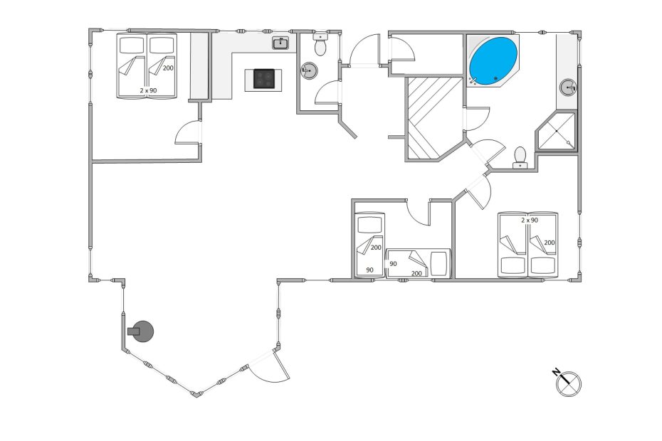 Das Ferienhaus hat eine schöne und helle Einrichtung mit modernen und komfortablen Möbeln und eine gute Raumaufteilung. Alle Räume sind großzügig geschnitten und mit bis zu 6 Personen habt ihr hier ausreichend Platz. Die 6 Schlafplätze verteilen sich auf drei gute Schlafzimmer.