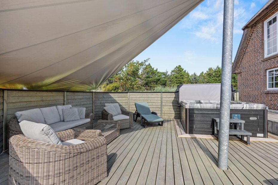 Am Haus liegt eine große Terrasse, die Platz für alle verspricht. Auf den Gartenmöbeln könnt ihr alle zusammen das Wetter genießen und in der Sonne ein Buch lesen. Besonders attraktiv ist jedoch der Außenwhirlpool, der Groß und Klein in seinen Bann zieht.
