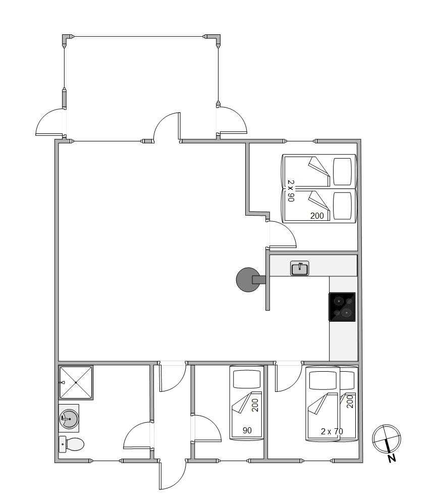 1 Doppelbett, 1 Einzelbett, 1 Etagenbett