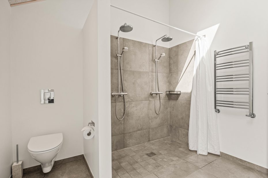 In beiden Badezimmern fehlt in der Dusche eine Ablage für Duschgel/Shampoo.