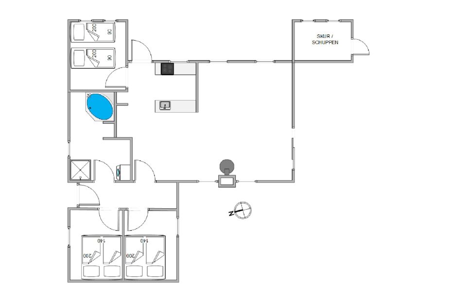 Von eurer Adresse auf Sandtoftevej 58 könnt ihr entweder in das angrenzende Heidegebiet wandern oder auch die 2000 Meter bis zum Strand sowohl zu Fuß als auch mit dem Fahrrad zurücklegen. Ganz in der Nähe befindet sich der Zoo von Blåvand, das berühmte Tirpitz Museum aber auch Einkaufsmöglichkeiten sowie Cafés und Restaurants im Zentrum von Blåvand.