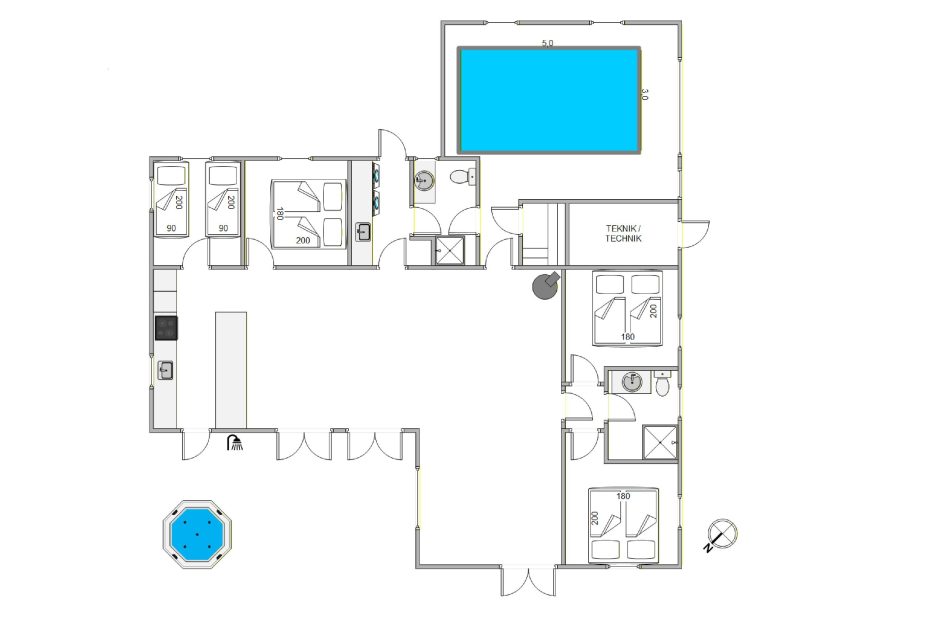 Das luxuriöse Poolhaus am Svinget 1B in Blåvand ist Inbegriff für erfüllte Ferien am Meer. Die vielen Highlights dieses Fünf-Sterne-Ferienhauses wie Innenpool mit Gegenstromanlage, Sauna und Außenwhirlpool, sowie ein Poolbillardtisch bieten sowohl Aktivität als auch Entspannung für 8 Personen und einen Hund.