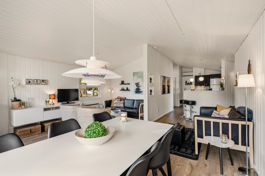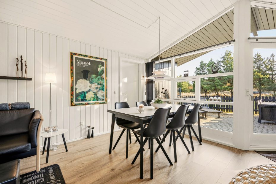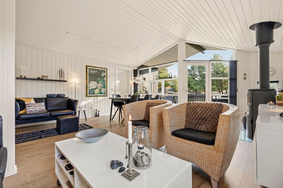 Das klassische Holzhaus ist der perfekte Ausgangspunkt für einen entspannenden Urlaub, weit weg von Lärm und Alltag. Schon beim Eintreten wird euch die helle und gemütliche Atmosphäre mit einem Kaminofen gefallen. Die großen Fenster im Wohnbereich lassen die Sonnenstrahlen und die grüne Natur von Blåvand in den Raum. Hier ist auch ein Alkoven integriert für ein Mittagsschläfchen oder nur um in Ruhe ein Buch zu lesen. Hier kann man sich vom ersten Urlaubsaugenblick zu Hause fühlen.