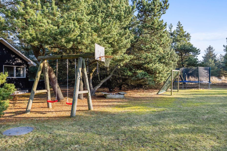 Das Ferienhaus liegt auf einem 1450 m2 großen Grundstück, bestückt mit Schaukel, Sandkasten und Trampolin. Während sich die Eltern es sich auf der Terrasse gemütlich machen, können sie den Kindern beim Spielen zusehen oder mit ihnen zusammen Fußball oder Basketball spielen. Alles ist vorbereitet.