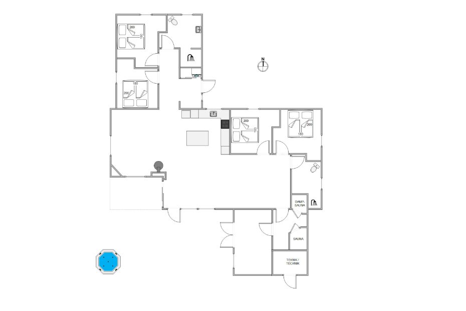 Das Ferienhaus hat 4 schöne Schlafräume mit je einem Doppelbett, die alle mit einem Fernsehgerät ausgestattet sind. In dem größeren von den 2 Badezimmer findet ihr eine Besonderheit die Wellness verspricht, denn hier findet ihr außer einer Sauna auch eine Dampfkabine (türkisches Bad) verspricht.