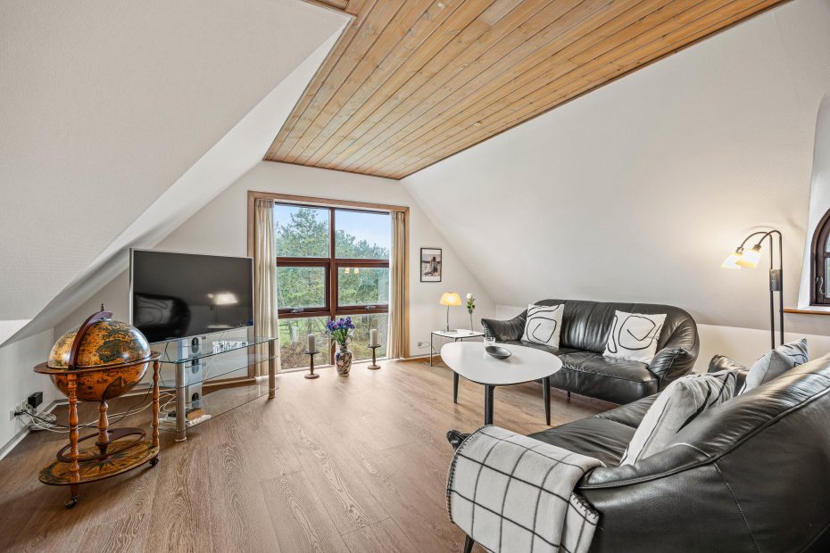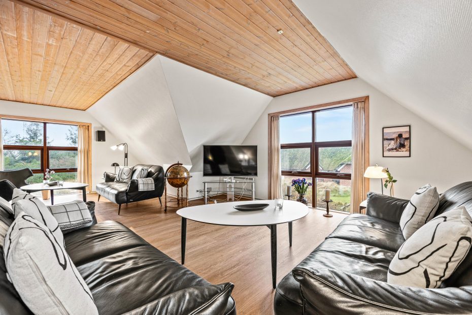 Das 191 m² große Ferienhaus erstreckt sich über zwei Etagen. In der oberen Etage befindet sich das gemütliche Wohnzimmer, in dem ihr viele schöne Urlaubsmomente verbringen könnt- vielleicht mit einem Kartenspiel oder bei einem geselligen Filmeabend? Von hier aus könnt ihr sogar den Leuchtturm Blåvandshuk sehen, der an der westlichsten Spitze Dänemarks steht.