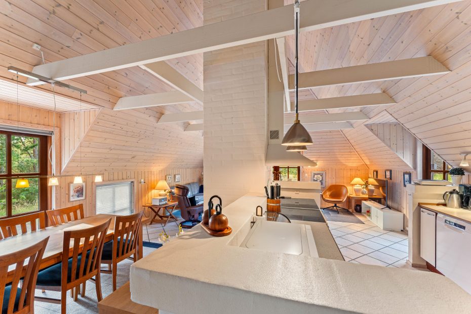 Das gepflegte Haus entspricht der Beschreibung auf der Esmark-Webseite. Die Haushaltsgeräte funktionieren einwandfrei, auch der Gasrill war sauber und praktisch. In den für uns eher weichen Betten haben wir, wider Erwarten, sehr gut geschlafen. Der Wohnessbereich mit zentraler Kochzeile ist schön eingerichtet. Der Holzofen und die Holzdecke machen es auch an kühleren Abenden warm und gemütlich.