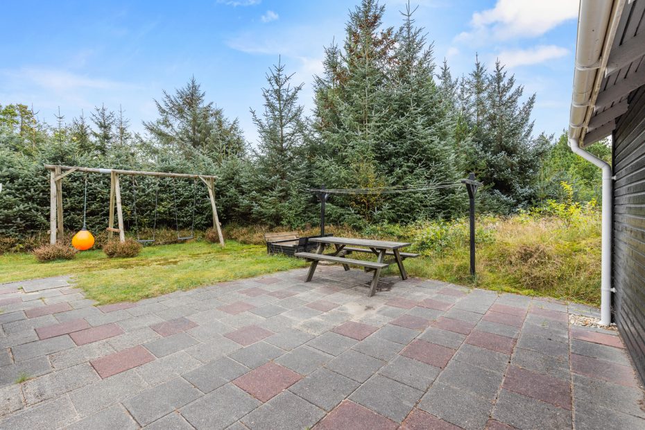 In der warmen Jahreszeit wird sich das Ferienleben überwiegend draussen abspielen. Die abgeschirmte teilweise überdache Terrasse ist mit guten und bequemen Gartenmöbeln ausgestattet und lädt zum Sonnenbaden und Grillen ein. Zum Vergnügen der jüngeren Gäste stehen Schaukeln und ein Sandkasten zum Buddeln bereit.