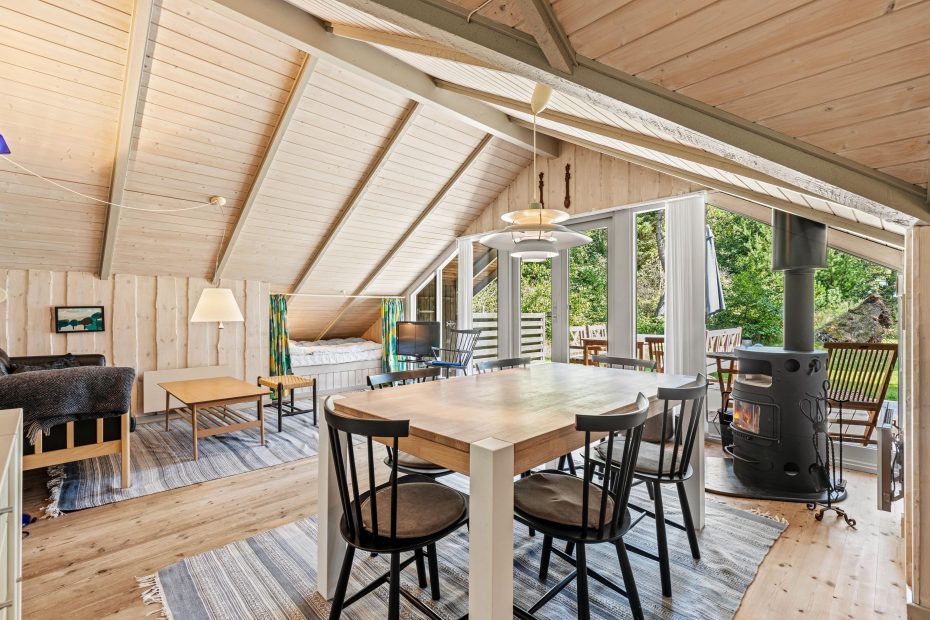 Im kombinierten Wohn- und Küchen-/Familienzimmer könnt ihr es euch mit einem spannenden Film auf dem Flachbildschirm oder einem Kartenspiel am Couchtisch gemütlich machen, während ihr euch gegenseitig ein gutes Essen kocht, und der Holzofen heizt das Haus und verbreitet in Kombination mit der effizienten Wärmepumpe eine gute Atmosphäre an kalten Tagen.