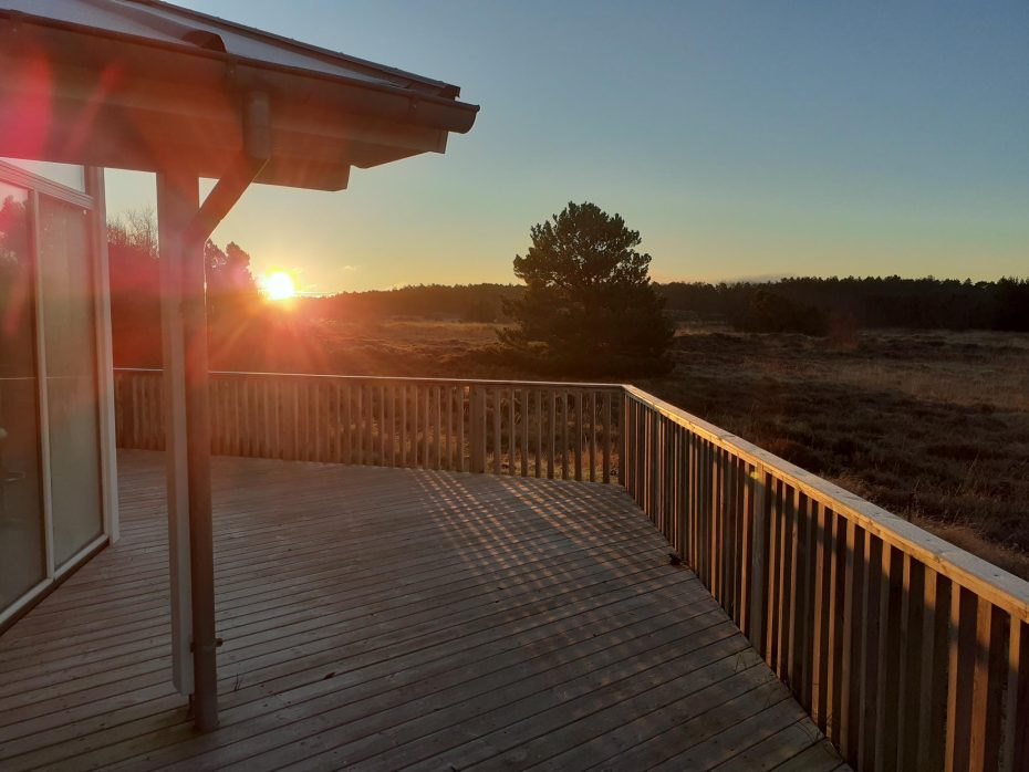 Wunderschönes offenes Haus mit Terrassen zu allen Seiten mit traumhaften Blick über die Heidelandschaft, man findet immer eine windstille und sonnige (!) Ecke. Die Rsaenfläche hat uns schon so manch schönen Kubb-Abend beschert…