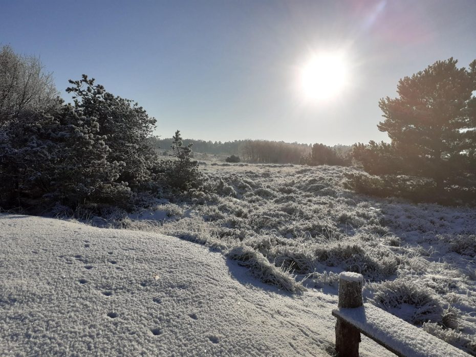 Das Ferienhaus liegt, mit einem tollen Ausblick in der Heide. Es hat eine sehr große geschlossene Terrasse mit einer (warm/kalt) Aussendusche.