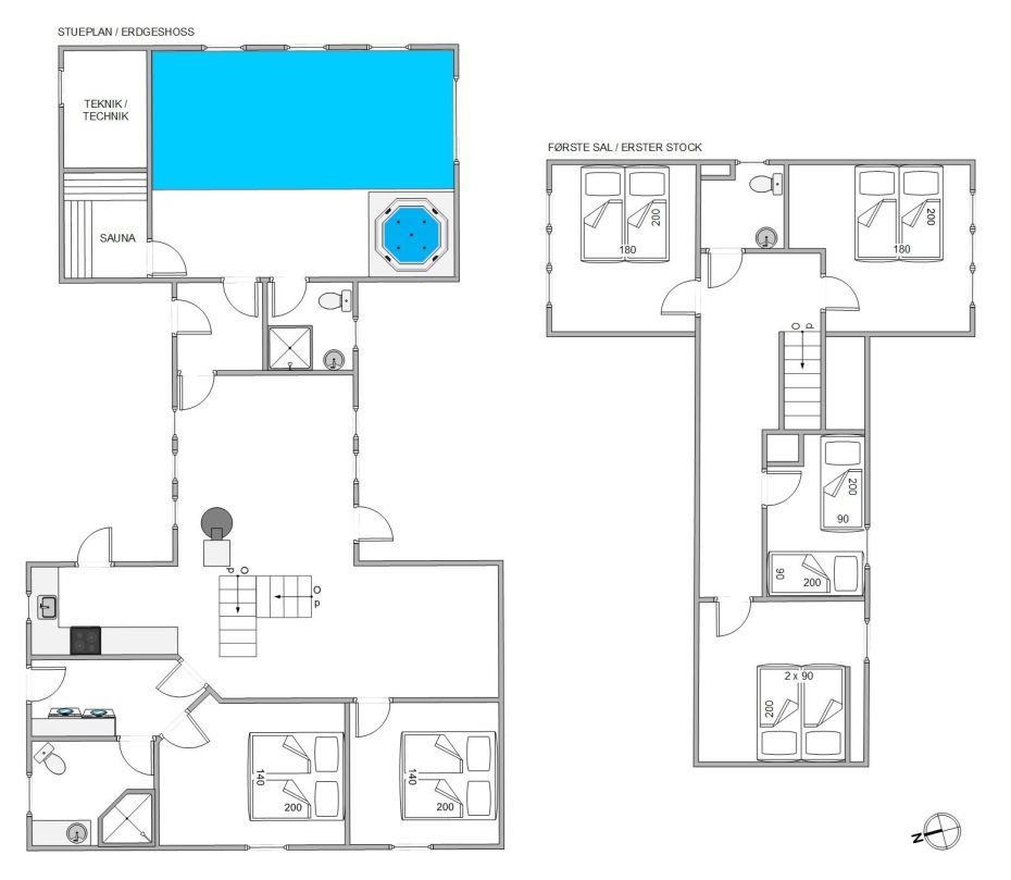 So könnt ihr z. B. eine Runde im Pool schwimmen oder mit euren Kindern planschen. Oder ihr entspannt im heißen Wasser des Whirlpools und anschließend bei einem ausgiebigen Saunagang. Dank der 2 Bäder mit Fußbodenheizung und dem zusätzlichen Gäste-WC, könnt ihr euch gut aufteilen und Wartezeiten vermeiden. Am Abend warten insgesamt 6 kuschlige Schlafzimmer mit bequemen Betten auf euch. In einem der Schlafzimmer gibt es einen weiteren Fernseher.