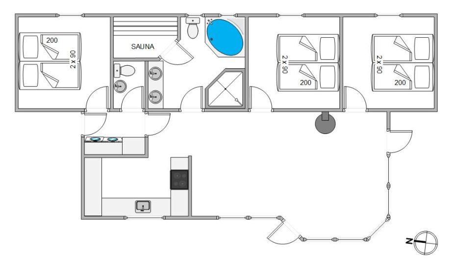 In diesem gut aufgeteilten Ferienhaus findet ihr neben dem großen Badezimmer mit Fußbodenheizung, auch ein Gäste-WC. Dadurch könnt ihr Wartezeiten vermeiden. Im großen Bad erwartet euch zudem mit Whirlpool und Sauna eure eigene Wellnessabteilung, die zum Entspannen und Seele baumeln einlädt. So entspannt könnt ihr euch dann in die 3 gemütlichen Schlafzimmer mit Doppelbetten zurückziehen, um neue Energie für den nächsten Urlaubstag zu tanken.