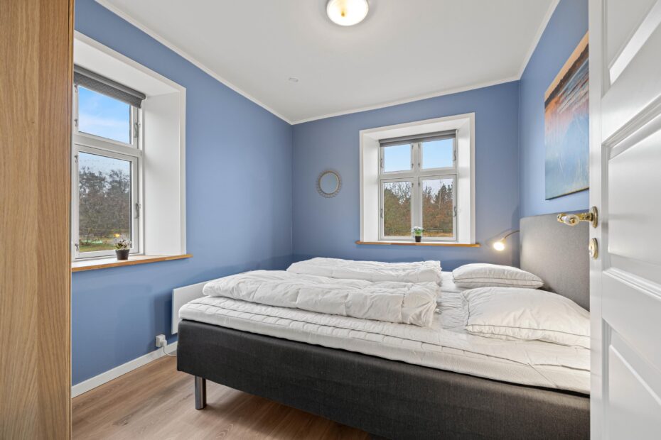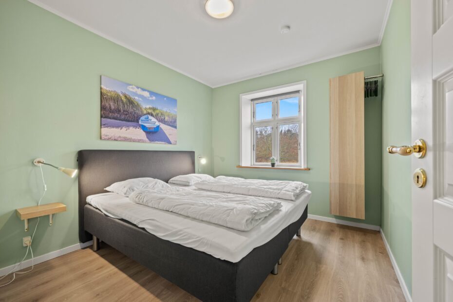 Am Abend wird es Zeit, die Schlafzimmer zu verteilen. Da alle mit Doppelbetten in verschiedenen Größen ausgestattet sind, wird wohl die Farbe der Wände entscheiden. Ein Schlafzimmer befindet sich auf der zweiten Ebene. Es wurde jedes Zimmer im Ferienhaus in einer anderen Farbe gestrichen, auch das trägt dazu bei, dass dieses Ferienhaus wirklich einmalig ist.