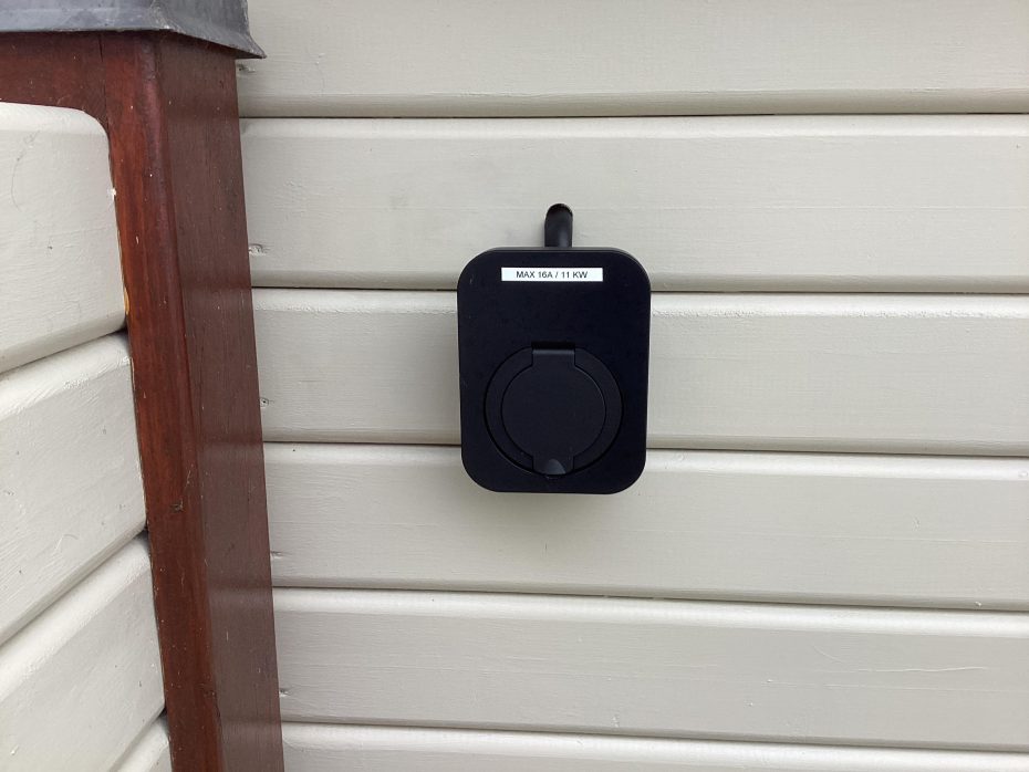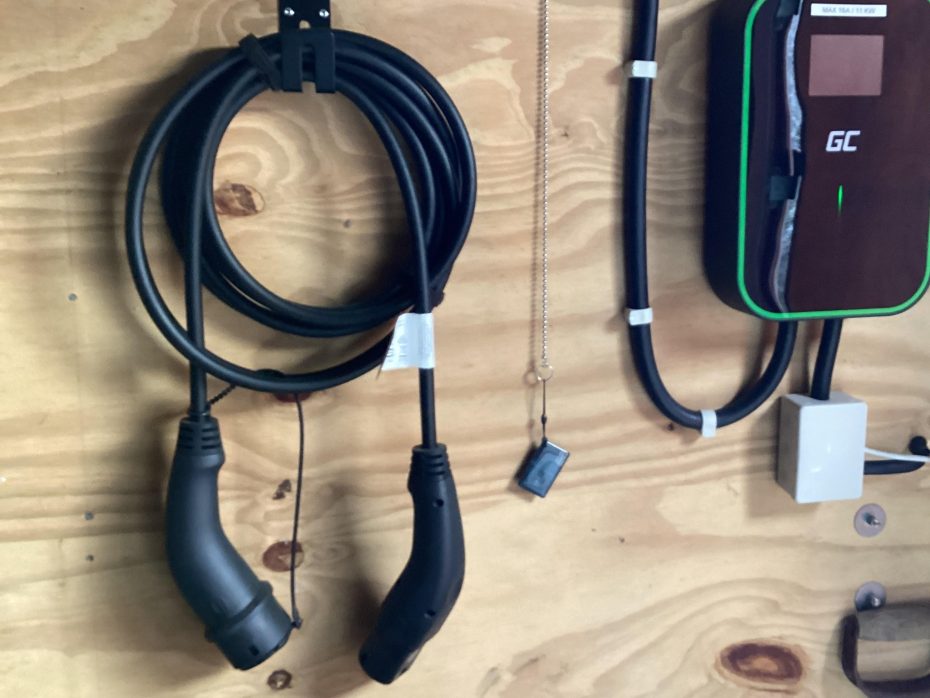 Und wenn ihr ein E-Auto fahrt, könnt ihr dies am Haus aufladen, denn es gibt eine Lademöglichkeit mit einem Typ-2-Ladekabel.
