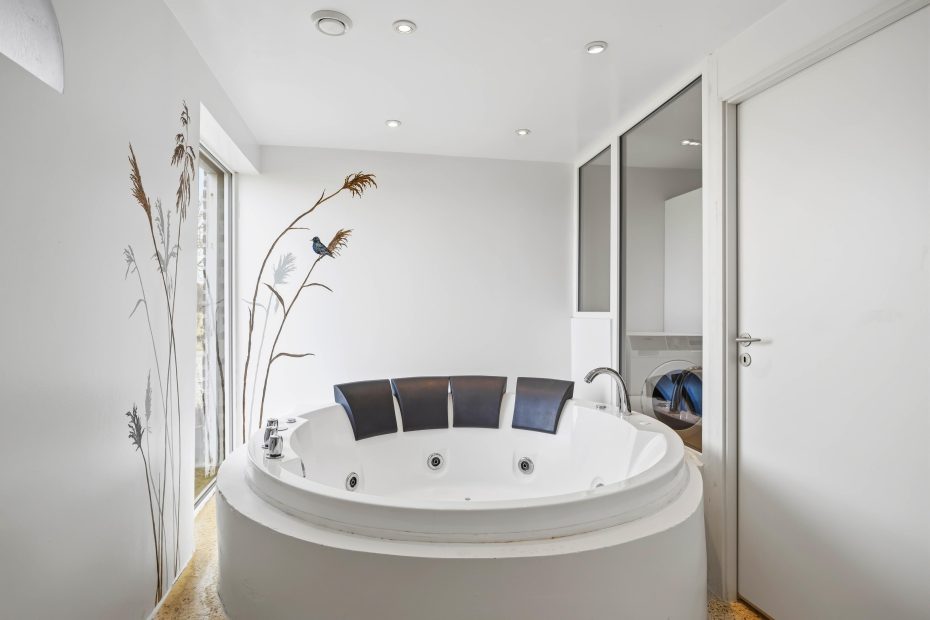 Das Ferienhaus ist mit drei Badezimmern ausgestattet, natürlich alle mit Fußbodenheizung. Im Masterbadezimmer erhaltet ihr eine luxuriöse Wellnessoase mit Whirlpool, in der ihr nach einem erlebnisreichen Tag am Strand neue Kraft tanken könnt.