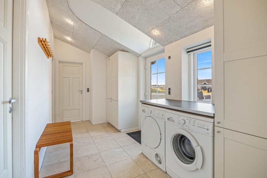 Dieses 6 Personen Ferienhaus am Rande der Feriensiedlung Bjerregård ist wirklich außergewöhnlich und geschmackvoll eingerichtet. Auf 115 qm finden sich viele tolle Details. Zum Beispiel hat jedes Schlafzimmer ein eigenes Badezimmer, was besonders bei voller Belegung sehr praktisch ist.