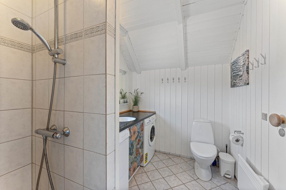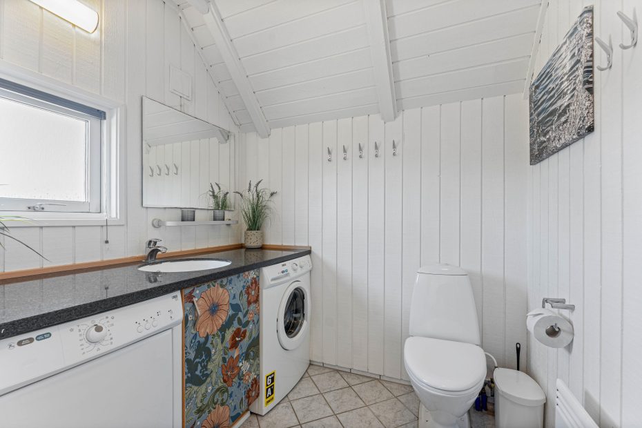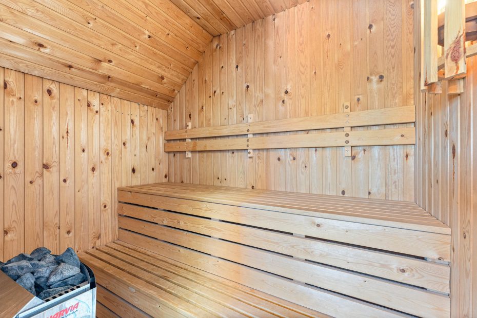 Der Boden ist mit hellem Laminat verlegt, die Wände und die Decke sind passend mit hellem Holz verkleidet. Im Ferienhaus könnt ihr nach einem ausgiebigen Strandspaziergang in der Sauna entspannen. So könnt ihr euch ideal wieder aufwärmen.