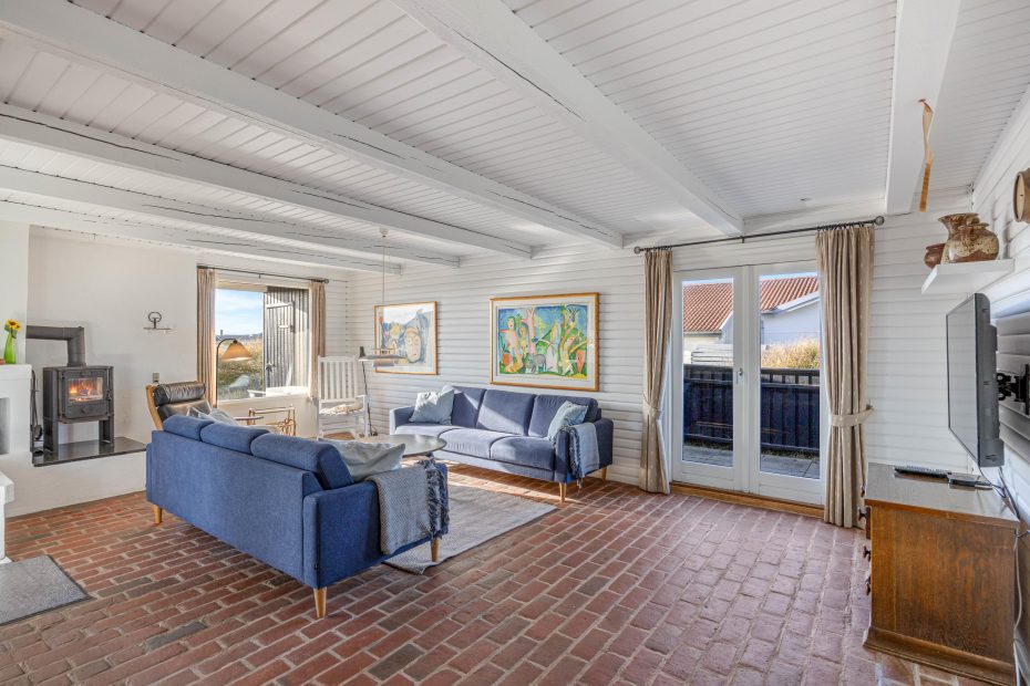 Im Julianevej 35 erwartet euch ein charmantes Ferienhaus in Bjerregård, mit idealer Lage nah am Strand und den Dünen der dänischen Westküste. Das Ferienhaus aus dem Jahre 1980 ist gemütlich eingerichtet, hat weiße Holzwände und rustikale Fliesenböden. Von dem Wohnbereich gelangst du auf die schöne und überdachte Terrasse.