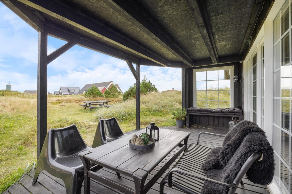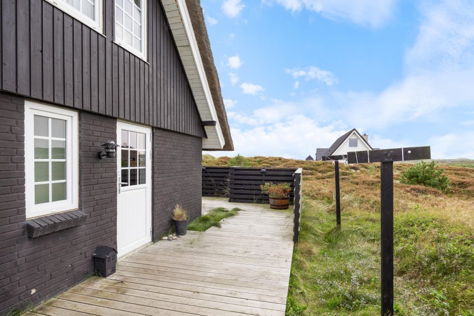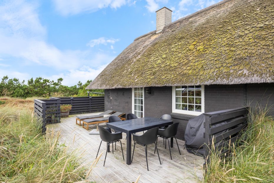 Umgeben von einem großzügigen Dünengrundstück, liegt euer Ferienhaus eingebettet in die hier so typische Landschaft. Auf drei Seiten findet ihr rund um das Sommerhus verschiedene Terrassenbereiche, die mit ihren bequemen Gartenmöbeln zum Entspannen an der frischen Meeresluft einladen.