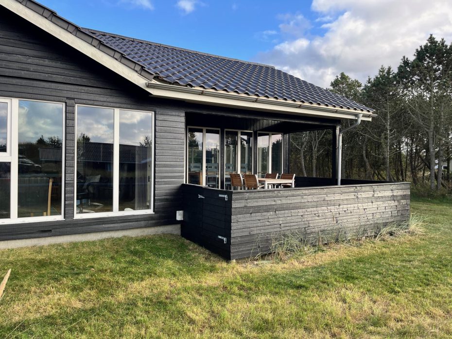 Licht, Geräumigkeit, Gemütlichkeit und Komfort kennzeichnen dieses schöne Ferienhaus, das auf einem teilweise abgeschirmten Naturgrundstück zwischen Meer und Fjord liegt. Die Küche des Ferienhauses wurde 2025 renoviert und das Ferienhaus verfügt über einen gut isolierten Wintergarten, der einen natürlichen Übergang zu der teilumlaufenden Terrasse und zur umliegenden Natur bildet. Der Wintergarten kann fast das ganze Jahr über genutzt werden.