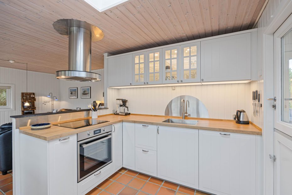 Die zahlreichen Fenster lassen viel Licht rein und bieten gleichzeitig einen tollen Blick auf das Grundstück. Der offene Küchen- und Wohnbereich ist das Herz des Ferienhauses und lädt zum gemeinsamen Kochen und Beisammensein ein. Nach dem Essen könnt ihr es euch auf der Sofalandschaft gemütlich machen und zusammen ein Film schauen, während der Geschirrspüler den Abwasch erledigt. Im Wohnbereich findet ihr auch den Kaminofen, der euch in der kälteren Jahreszeit Wärme spendet und für die richtige Urlaubsstimmung sorgt. Schnapp dir ein gutes Buch und mache es dir in dem Lesesessel gemütlich, während sich die Wärme im Raum verteilt.