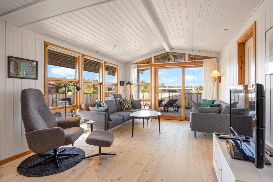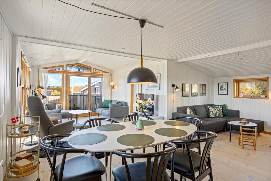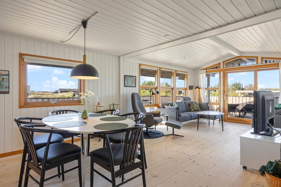 Nicht nur praktisch, sondern auch gemütlich präsentiert sich dieses schöne Ferienhaus im Julianevej 74. Die mit Liebe zum Detail ausgewählte Einrichtung schafft Gemütlichkeit und lädt dazu ein, die Seele baumeln zu lassen. Kuschelt euch bei einem DVD-Abend vor den Fernseher und genießt dabei die Wärme und das Knistern des Kamins oder verbringt einen geselligen Spieleabend am Esstisch.