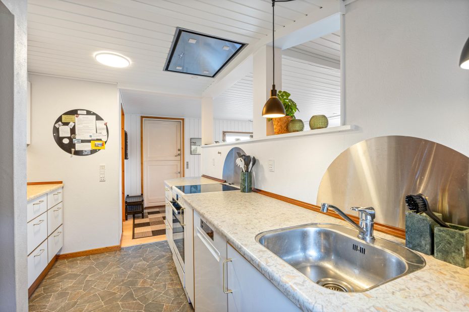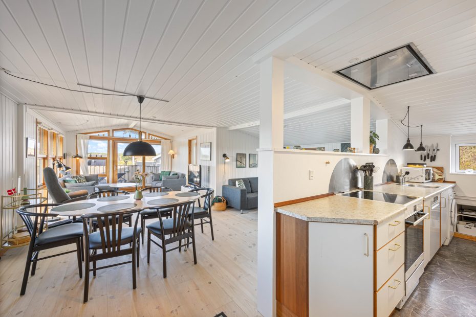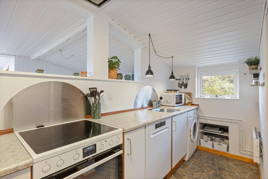 Auch während des Kochens könnt ihr, dank der offen gestalteten Küche, Zeit miteinander verbringen. Neben einer Spülmaschine findet ihr hier auch die praktische Waschmaschine, die besonderes für Familien mit kleineren Kindern nützlich ist. Das gepflegte Badezimmer wurde mit einer Dusche ausgestattet. Insgesamt findet ihr drei gemütliche Schlafräume in diesem hyggeligen Ferienhaus, so dass sich jeder auch mal zurückziehen kann.