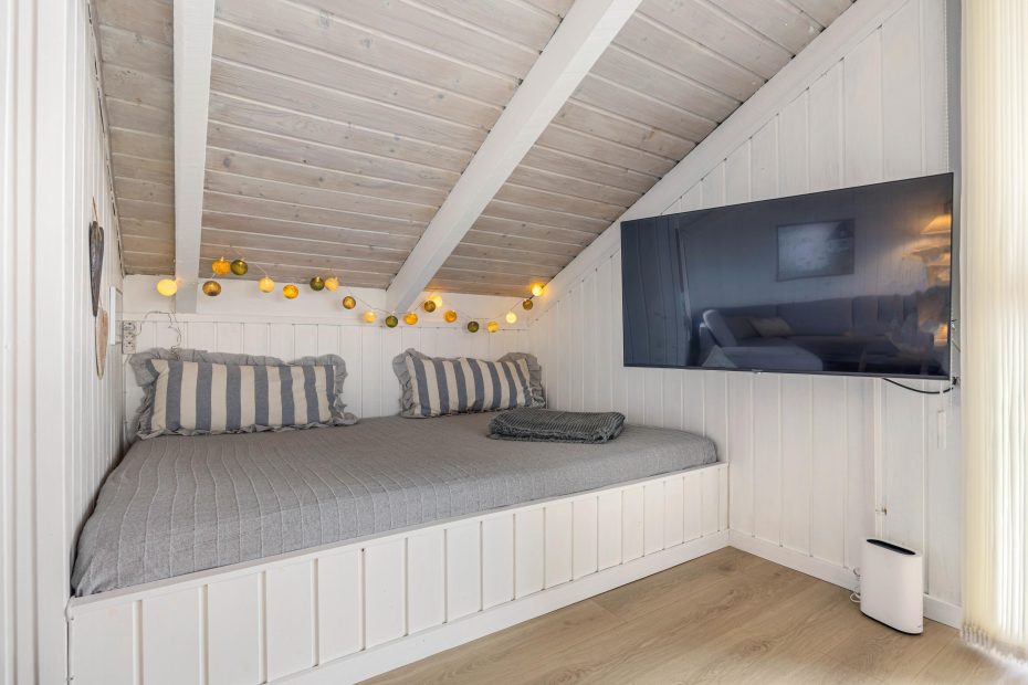 Das Haus ist sehr gemütlich eingerichtet. Die räumliche Aufteilung ist gut durchdacht. Dafür, das das Badezimmer recht groß ist fällt die Sauna allerdings extrem klein aus. Es gibt 2 gleichwertige Schlafzimmer und ein kleineres Kinderzimmer. Die beiden Betten im Wohnzimmer sind eine Couch.