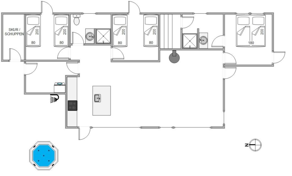 Das modern eingerichtete Luxusferienhaus enthält viele gute Higlights. In dem großen Gemeinschaftsraum mit moderner Küche und gemütlichem Wohnzimmer steht der Holzofen und verspricht Wärme und viel Gemütlichkeit. Eine energiesparende Wärmepumpe garantiert ein gutes Raumklima – wenn ihr euch aber wirklich entspannen und aufwärmen möchtet, könnt ihr die hauseigene Sauna nutzen oder einen Abstecher in den Whirlpool auf der Terrasse machen.