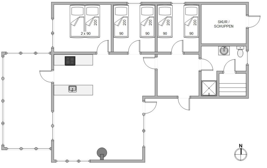 Dieses gemütliche Ferienhaus wurde 2009 das letzte mal renoviert. Es gibt 3 Schlafzimmer, eins hat ein Doppelbett und in den anderen stehen jeweils 2 Einzelbetten. Im Badezimmer ist eine Duschkabine und eine Sauna vorhanden. Die Waschmaschine des Hauses findet Ihr im Eingangsbereich.