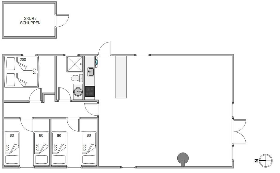 Das Ferienhaus bietet euch 3 Schlafräume mit Holzfussböden und ein freundliches und praktisches Duschbad.